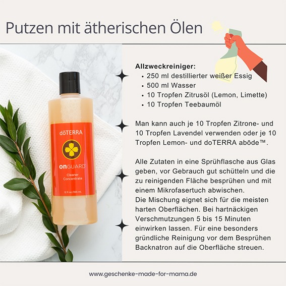 Putzen-mit-ätherischen-Ölen-Blog-Geschenke-made-for-Mama Schreiben Sie einen Kommentar / Von Susanne / 23. Februar 2024 Schadstoffe im Haushalt vermeiden – Universalreiniger mit ätherischen Ölen Blog Geschenke made for Mama